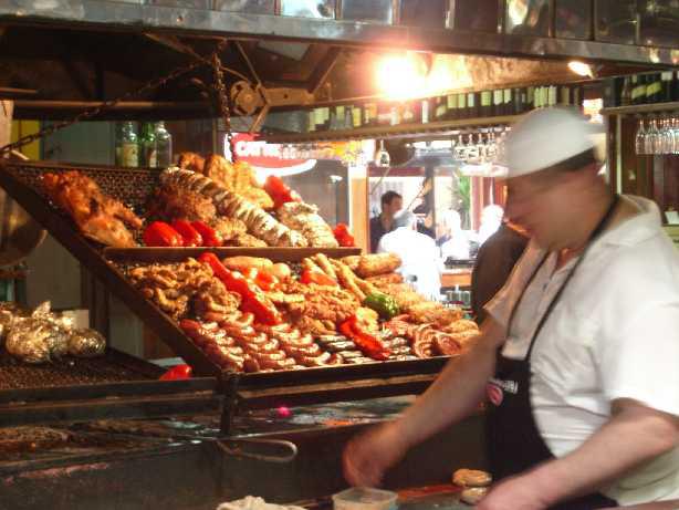 お肉の焼けるいい匂いが市場中に漂ってて、