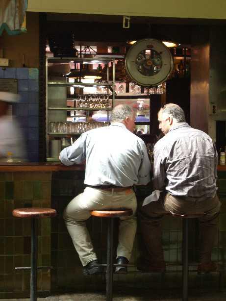 天窓から差し込むお昼間の日差しに照らされ、オジさん二人がカウンターで飲みながら語らってたくまよっ♪笑