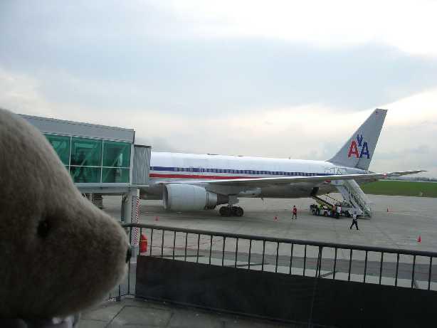 ゲートのトコから、ボクたちをアルゼンチンに連れてってくれる、これから乗る飛行機を眺めたくまっ♪ うひっ☆☆v(^(エ)^)v
