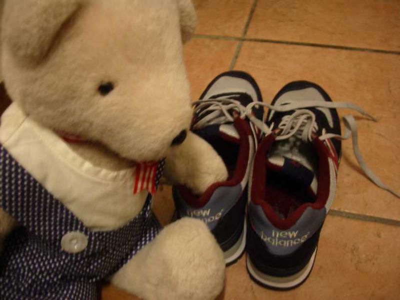 いつもママが愛用してるナイキのスニーカーは、3月・ベトナムに行った後、ソールが少しはげちゃったくまから、今回はニューバランスのおニューのスニーカーを買って、これでご旅行に出発くまっ!v(^(エ)^)v