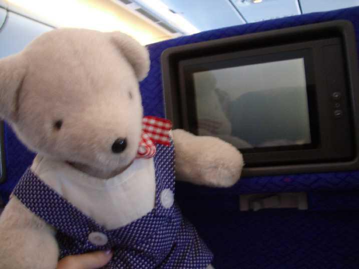 ボクたちが乗った飛行機は、1座席さ1つずつテレビ画面がついてる機材だったくまよぉ〜♪