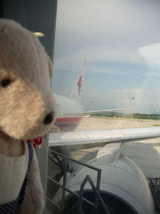 飛行機まで続いてるブリッジの途中から、これから乗るMH194便の機体を撮ったくまよん♪