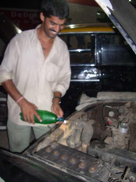 スタンドに着くと、運転手さんは車のボンネットを開けて、こんなトコから何か入れてたくまよ!