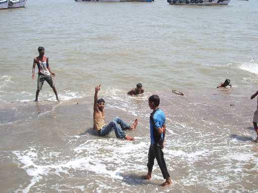 インド門の向こう側には、階段状になってて海に入れるようになってるトコがあって、そこから海に入ってる男の子たちがいたくまよっ!