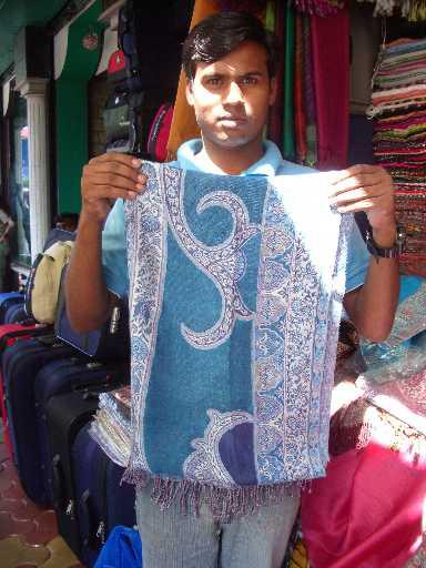 小道から、マーケットというか歩道にいろんなお店(露店)が出てる通りに出て、400Rs(≒¥1,120)で買ったカシミアのストールくまよ♪
