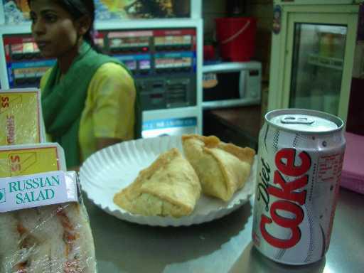サモサ2つと、ダイエットコーク1本で80Rs(≒¥224)o(^- ^)o