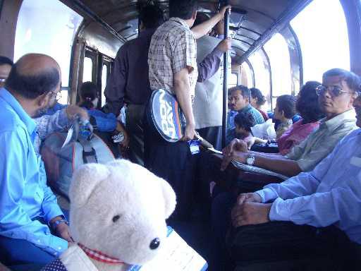 搭乗案内が流れたくまけど、どうせ混むくまからボクたちは最後に並んでバスさ乗ったくまっ♪