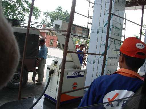 シィリグリーの町を出て、途中、ダージリン方面に行く人を数人ピックアップしながら15分〜20分ほど走ったトコで、ガソリンスタンドに寄ったくまよっ♪♪