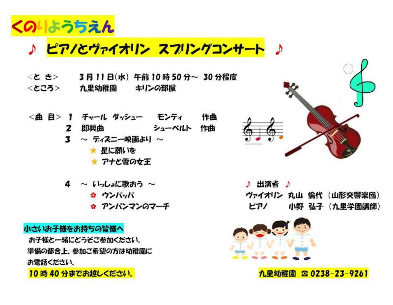 ピアノとヴァイオリン スプリングコンサートを開催します。