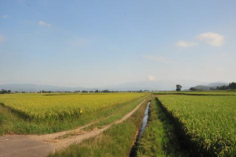 稲穂は黄金色に輝いて、頭をたれている。