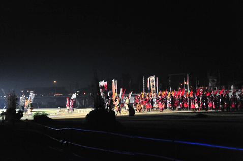 特別バージョン「夜の川中島合戦」闇夜に壮大な戦国絵巻の演出。