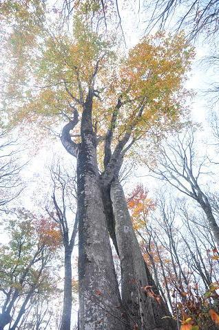 ▼ブナの紅葉(5) 樹齢何年でしょう?大木!