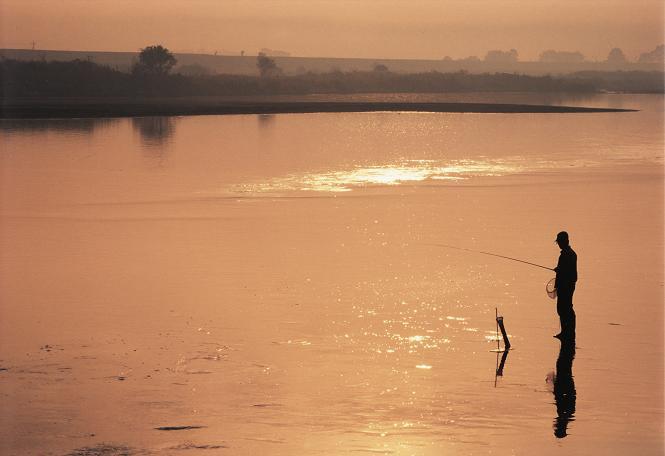 ▼利根川の「釣り人」