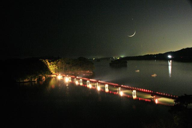 宿泊したホテルの屋上より撮 三日月に金星が接近したのを合成写真