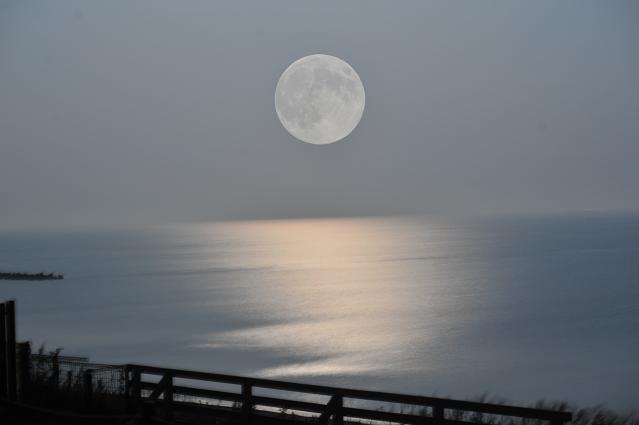 8月25日、満月が海に沈むチャンスを撮ろうとしたが撮れなかった。
