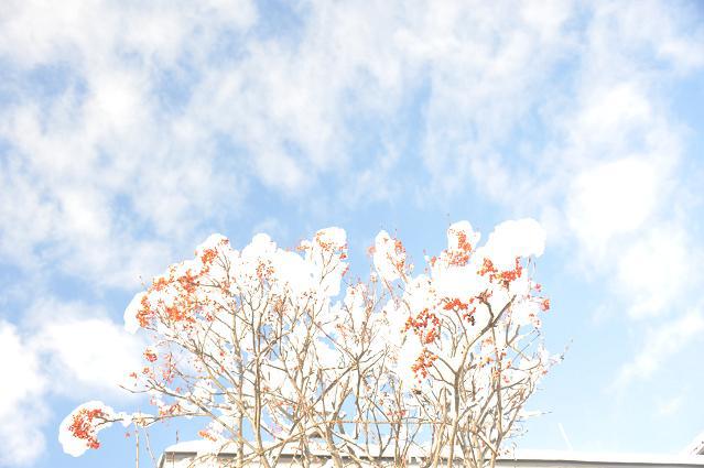 先日の雪、10cm程の新雪。ホワイトクリスマスの前触れ、イエスキリストを待ち望むアドベントにふさわしい天からの雪のプレゼント。隣接の庭の赤い実に真っ白な初雪。朝の晴れた日の素晴らしい風景。
