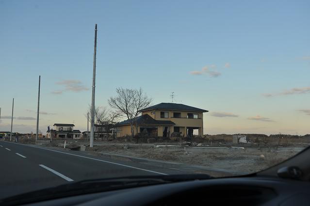 車の中より撮影。山本町、頑丈な家が残されていたが。一階部分は津波の激しさをものがっていた。