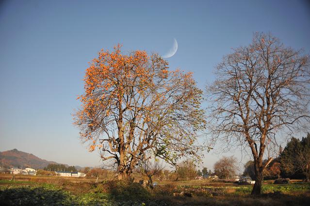 良く晴れた秋の早朝は気持ちがいい。吾妻山が薄化粧、間もなく里にも雪が降り出すことでしょう。すっかり柿の葉が落ちて丸裸。野鳥のためのご馳走でしょうか?高齢化社会で収穫する人がいないのでしょうか?毎朝高校生の孫娘の送迎をしていて思う晩秋の風景。孫は腰を痛めているので朝晩のアッシー、早く癒されるように祈っている。そのおかげで立冬を肌で感じている今日この頃。(米沢市の南原)