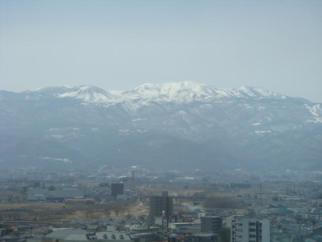 先日、所用で福島県へ行った。米沢での除雪等の仕事から開放されて、栗子のトンネルを過ぎ福島に入ると別世界。春だと肌で感じた。福島駅のあるビルで会議。昼食のため12Fの別室からの眺めると、快晴で山形・福島両県にまたがる吾妻連峰がよく見えた。