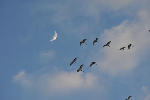 しかし、思わぬときにシャッターチャンス到来とシャッターを押す。「カシャ、カシャ・・・・」。私のほかにも、ご夫婦で見に来ていた。ご主人はカメラのシャッター音が、奥様は望遠鏡を持って観察していた。場所は「川西町大舟の沼」夕方撮影
