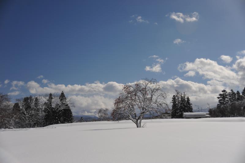 この風景は米沢市の古志田の雪深い、いつも柿の実が収穫されずに野鳥たちの大切な食料となっている。自然からのプレゼント。この寒い季節でもおいしく熟した柿の実を御馳走になり冬も元気に生き抜いていくことでしょう。