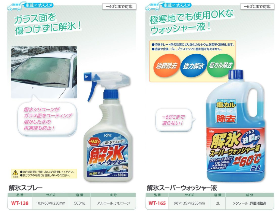 解氷スプレーと寒冷地仕様のウォッシャー液