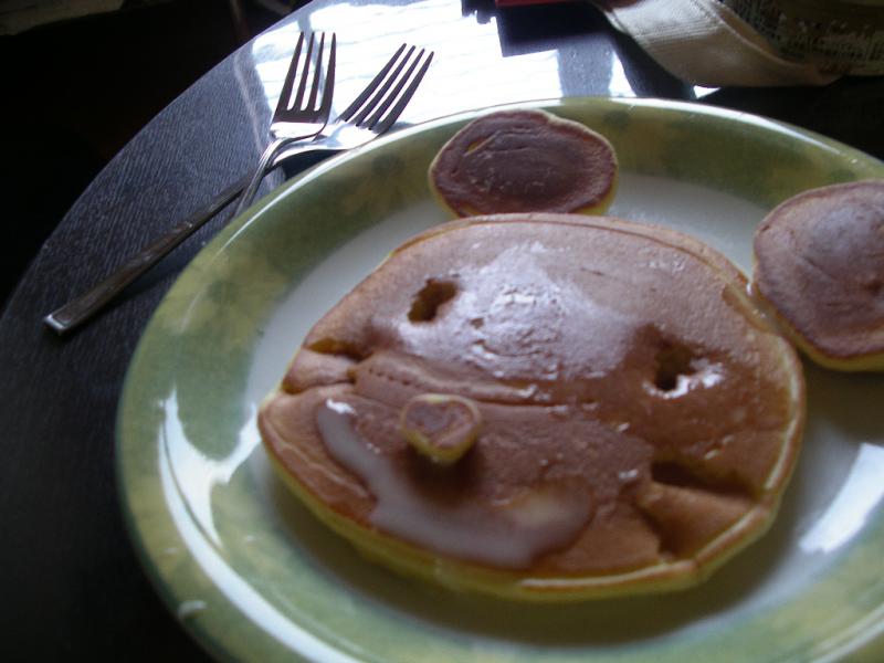 朝、クマさんのホットケーキつくりました!