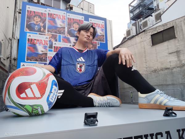 今の渋谷は外人さんが多いこと、とにかく人が多いですね・・モニュメント場所は道玄坂広場となってました。サッカー日本代表2026ホームユニフォームを発表し、プロモーションの一環として、道玄坂に設置された