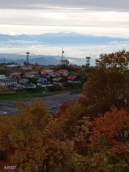 10月20日どんより曇りでしたが、天元台第一リフト下りから月山、姥が岳、湯殿山の山系が見えて、その左に朝日連峰が連なる・・この次の日、月山は初冠雪となる、1955年~2008年までの55年間のデータ を基に月山の初冠雪の平均日は10/15頃、月山の初冠雪の最も遅かった日は11/9 だそうです