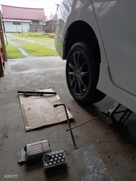 昨日ようやく我が車の冬タイヤ交換しました。雪道や凍結路での安全な走行のために、夏タイヤ(ノーマルタイヤ)から雪道・凍結路面に対応した冬タイヤ(スタッドレスタイヤ)に付け替えです・・雪国では必須の交換作業です。除雪機の整備に始まり、家周りの雪囲い、冬タイヤへの交換作業が終わり、残るはスノーポール立て:家周りの除雪時、境界をわかるようにするためのポール・・序口から市道まで側溝やコンクリ壁の堺を示すもの、除雪機が側溝に落ちたり、コンクリ壁に刃が当たらないようにするため必要ですからね・・除雪器具も小屋から出して、庭木の雪囲いもせんといかん・・まだやることありますありますね・・雪国は何かと大変・・12月7日までにはなんとか