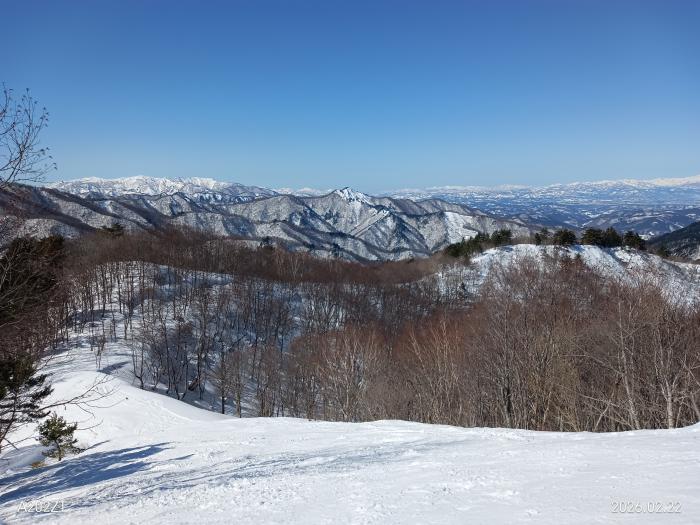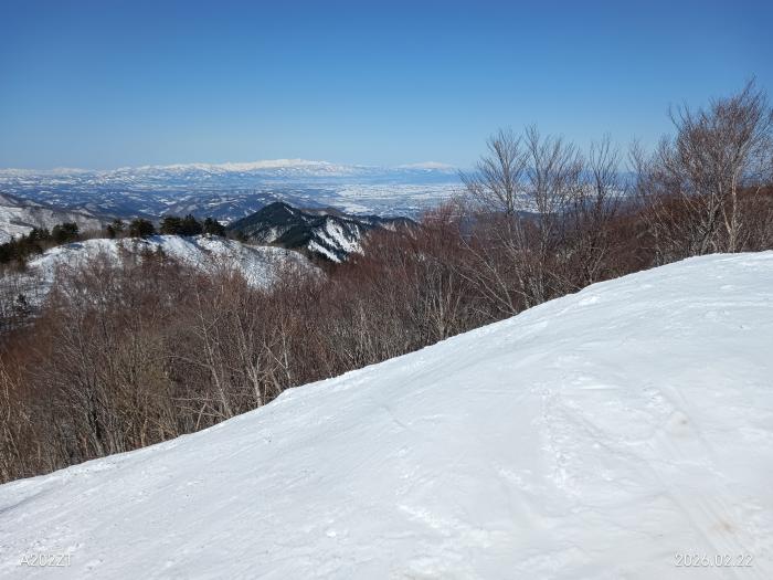 天元台高原のロープウェイ山頂より湯元駅まで滑り下りるコースは3㎞、今シーズン初で滑って帰りました・・昔は帰るときは第三リフト(1820m)まで行ってリフト三本3㎞、そして湯の平コース3㎞(920m)まで休みなしで帰れたものですがねきました、途中飯豊山、朝日連峰に月山を望む、昨日はお天気よく、べた雪・・例年になく雪少なく幅が狭いですし、ブレーキがかかりコーナー多く注意が必要ですが、楽しめました。ショートカット(コース内)は昔の白布までの国体コースがある・・アグレッシブに滑走が楽しめる。融雪が進むとクローズになる・・今年はクローズが早いかもです