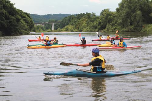毎年7月上旬に開かれる「最上川フェスタ」は、最上川の雄大な流れをカヌーやゴムボートで楽しむイベント。最上川を有効に活用し、水辺空間に親しんでもらおうと、大江町・寒河江市・中山町で組織する最上川活用地域推進協議会が開催している。大江町のふれあい会館をスタートし、寒河江市のチェリークア・パークで休憩。ゴール地点の中山町の長崎せせらぎ公園をめざす約11キロメートルのコース。参加者は自然と一体になって、川下りの醍醐味を満喫できる。