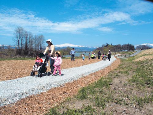 「ハイキングなどで歩く人のための道」をフットパスという。寒河江市でも整備され、市の南側に位置する高屋・島・皿沼の3つの集落にそれぞれコースが設置された。自然豊かな道や景色、街なかの旧跡や名所をたどる最上川フラワーコース、最上川ふるさと総合公園と最上川寒河江緑地を結ぶ川沿いの小みちを散策する最上川桜コースなど7コースがある。
