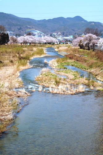 最上川の支流の須川沿いには、春の訪れとともに、ソメイヨシノが咲き乱れる。ここ上山市立南中学校の横を流れる須川の両岸もその一つ。