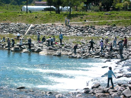 3月1日〜10月末までの期間に、寒河江ダムから下流水ヶ瀞ダムまでの約2キロメートル区間で野趣味あふれる釣りを楽しむことができる。
