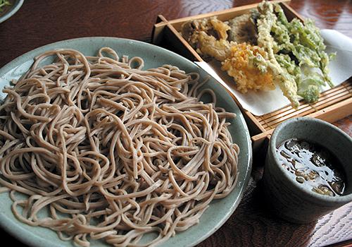 自家製粉のそば粉100%のそばが味わえる。石臼で挽いたそば粉を手打ちしたもりそば750円。