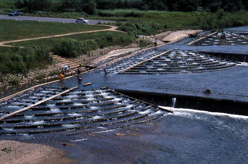 最上川に支流の羽黒川が交わる合流点から下流に1.6キロメートル。置賜橋のたもとの河川敷両岸に窪田水辺の楽校がある。流れが穏やかなこの辺りにはウグイやアブラハヤ、ギンブナなどがすみ、右岸の親水広場ゾーンでは、魚の観察ができたり、水遊びでのんびり過ごすこともできる。左岸には白鳥やカモが飛来する。白鳥観察テラス脇に、上杉鷹山の時代につくられた黒井堰の取水口がある。米沢盆地を潤す用水路が糠野目(高畠町)方面に伸びて行くのが観察でき、当時の偉業を偲ぶことができる。