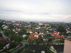 滞在している国はマレーシアで、今は雨期で涼しいらしいのだがとても暑い。ホテルから見た街の様子。