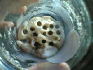 私はブツブツ系のものを見るのが苦手だ。写真はシャーベット状のモノにストローで穴を開けた物。軽く気持ち悪い。