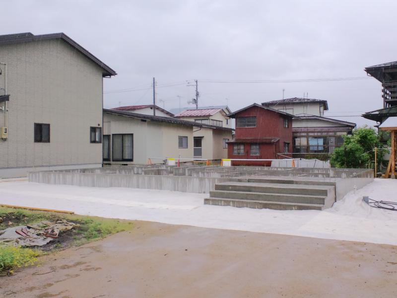 S様邸今日は、足場組み立ての日です。朝一番に養生シートを敷き込みました。がアイニクの雨模様です•••