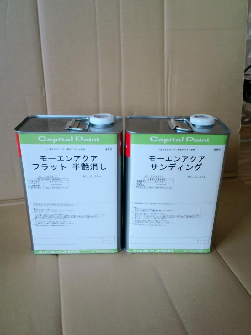 S様邸、今日LDK部分の無垢羽目板の天井の塗装を行います。LPGと薪ストーブの使用に伴い建築基準法の内装制限上の問題があり、塗料で防火材料認定を受けた”モーエンアクア”という水性クリアー塗料を使用します。無垢羽目板で難燃材料のものがありますが、とても¥がいいので予算的に御施主様に負担がかかります。でもこの塗料ならば、約1/3程度ですみます。同じ例でお悩みの同業者の方是非参考にして下さい。追伸、確認申請機関に要相談して下さい。