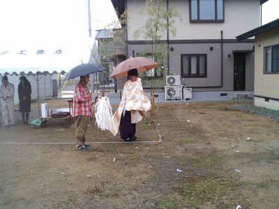 ちはっす!今日は親父の仕事の話です。あるときはスポ少追っかけ親父、またあるときは・・・親父の仕事は家作りのお手伝いをやってます。あるときは大工、またあるときは建築士(よろずやではありません)命をあずかる大事な仕事です。士がつく仕事(武士)は命をかけてやらなければいけません。話は変わり、昨日(お日柄も良く)これから仕事にかかる施主さんの地鎮祭手伝いをしてきました。悪天候ではありましたが無事終了しました。御祓いが終わると青空でした。まさしく”雨降って地固まる”でした。Sさんおめでとうございます。Sさんの家物語の始まりでした。