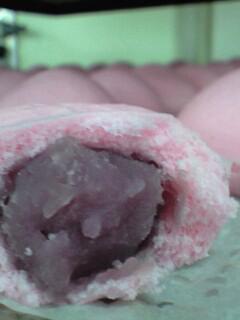 皮には ブルーベリーエキスを練り込み、 白ささぎの餡に ブルーベリージャムを練り込みました。