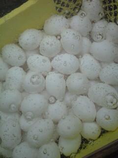 おいしい 温泉玉子に なるように しっかり 温泉に つかってるんです。
