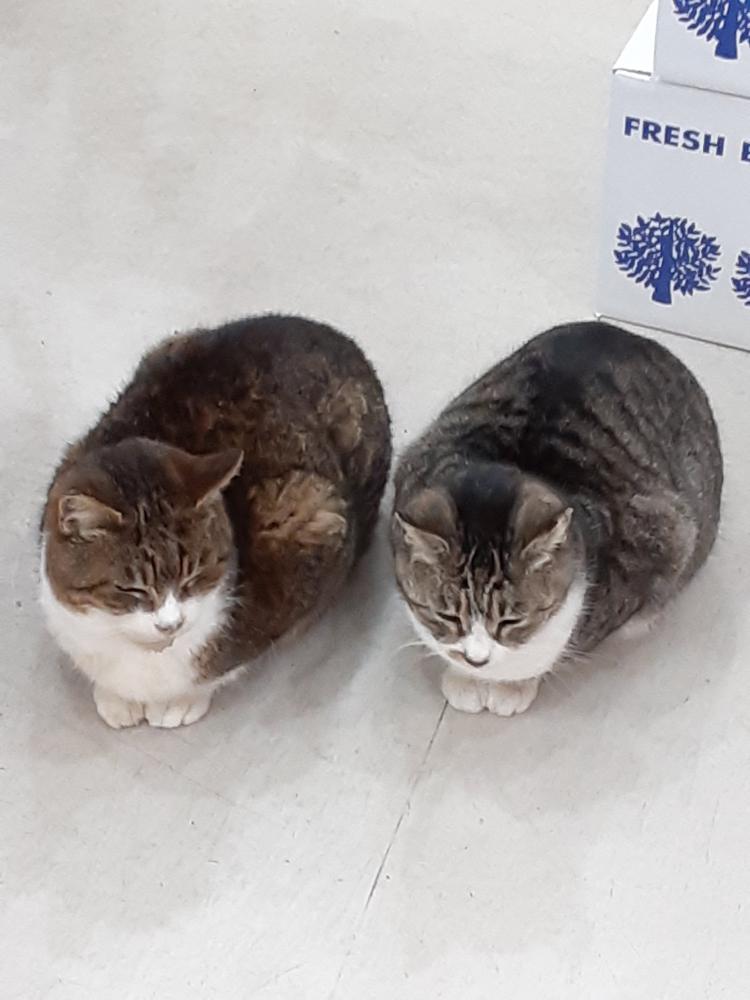 丸田屋で ご飯を あげている地域ねこの ちゃたろう、ちまです。