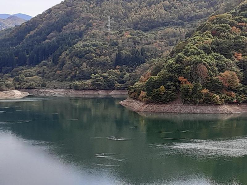 昨日の 綱木ダムの様子です。 まだ色づき始め、という感じです。 日々 色づきが深くなるようです。