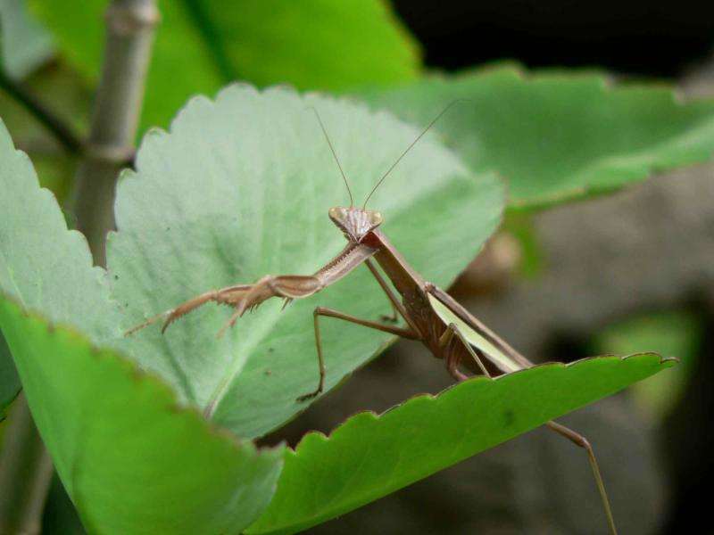 ▼螳螂(かまきり)が、マザーリーフの葉に