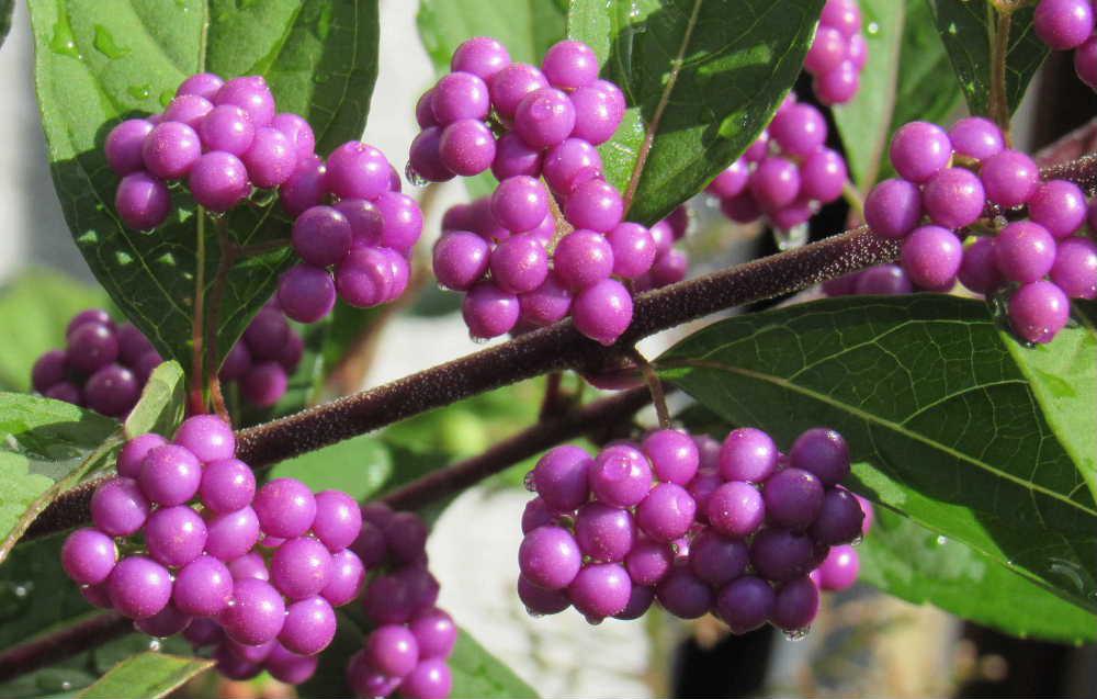 鮮やかな紫色の「コムラサキ」が我が家に秋を運んでくれるように色づいてきました「コムラサキシキブ」かなと思っていましたが正しくは「コムラサキ」という花木のようです 実がびっしりと密集して付き細長く枝がのび垂れ下がるように実がなっています カメラで鮮やかな紫色を写し撮るのが難しいのですが「コムラサキ」の実の美しさを感じとってもらえたでしょうか