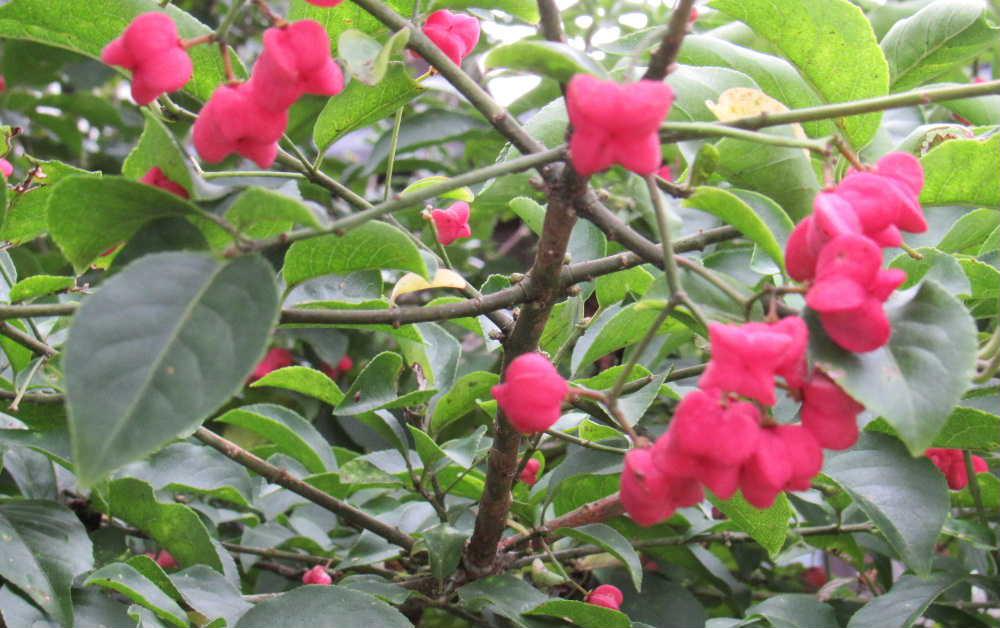 9月22日のブログで紹介した「セイヨウマユミ」が真っ赤に色づいていました 9月22日にはまだピンクがかっていましたが今は真っ赤に色づきぷっくと膨らんだ実がはじけて鞘がはじけて本当の実がでてくるそうです どこか愛らしい花木の一つですが動物が食べると死んでしまうほどの毒性があると知り綺麗な花にはとげがあるの例え通りと感心してしまいました