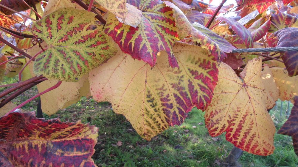 散歩中に見つけたブドウの葉です 収穫も終わりまもなく剪定の時期迎えるブドウ畑はまだ秋の名残惜しそうに葉を付けています ブドウの葉をあまり真面目に見たことがなかったのですが初めてじっくり見てみると 葉の表面はきれいな模様が描かれています なぜこうなるかも分かりませんが 冷たい風が一斉に葉を落とそうとしています